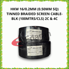 HKW 16/0.2MM (0.50MM SQ) TINNED BRAIDED SCREEN CABLE-BLK (100MTRS/CLS) 2C & 4C