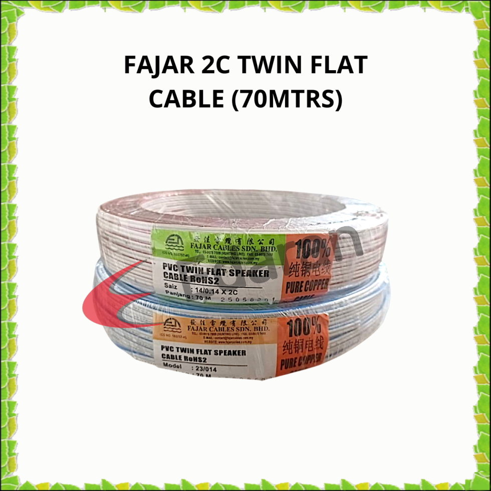 FAJAR 2C 14/0.14 TWIN FLAT CABLE (70MTRS)- WHITE/RED / FAJAR 2C 23/0.14 TWIN FLAT CABLE (70MTRS)- WHITE/BLUE