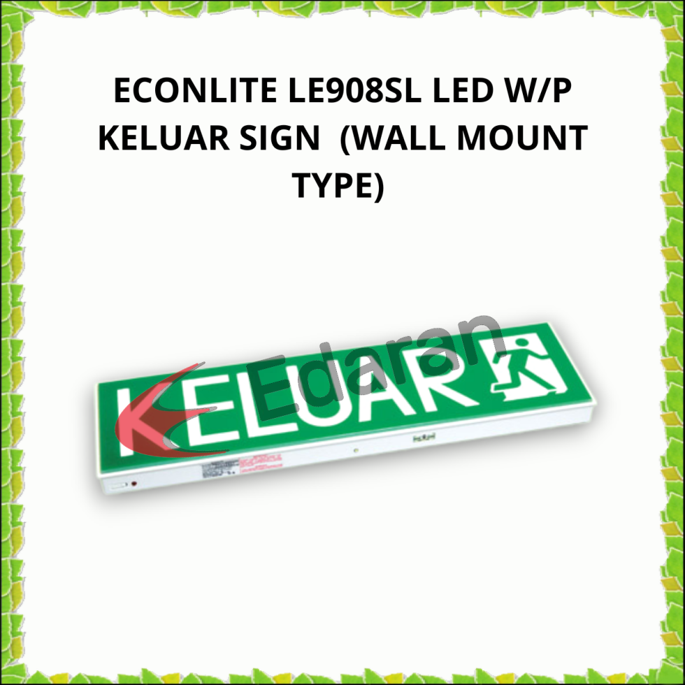 Ensure building safety and compliance with the Econlite LE-908SL, a high-quality, self-contained LED Exit sign. Designed for maximum visibility and durability, this unit is a staple for commercial and industrial projects across Malaysia.