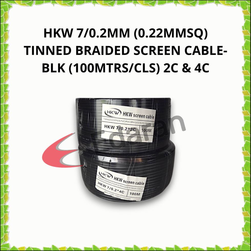 HKW 7/0.2MM (0.22MMSQ) TINNED BRAIDED SCREEN CABLE-BLK (100MTRS/CLS) 2C & 4C