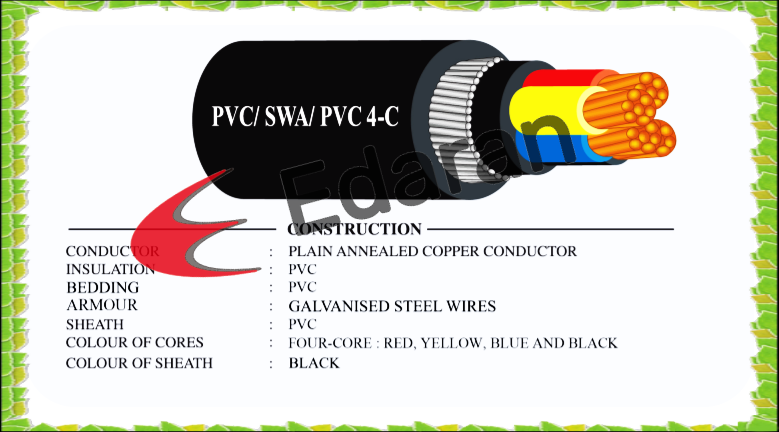 (X1 METER) 4C 10MM SQ 1KV PVC/SWA/PVC CU CABLE