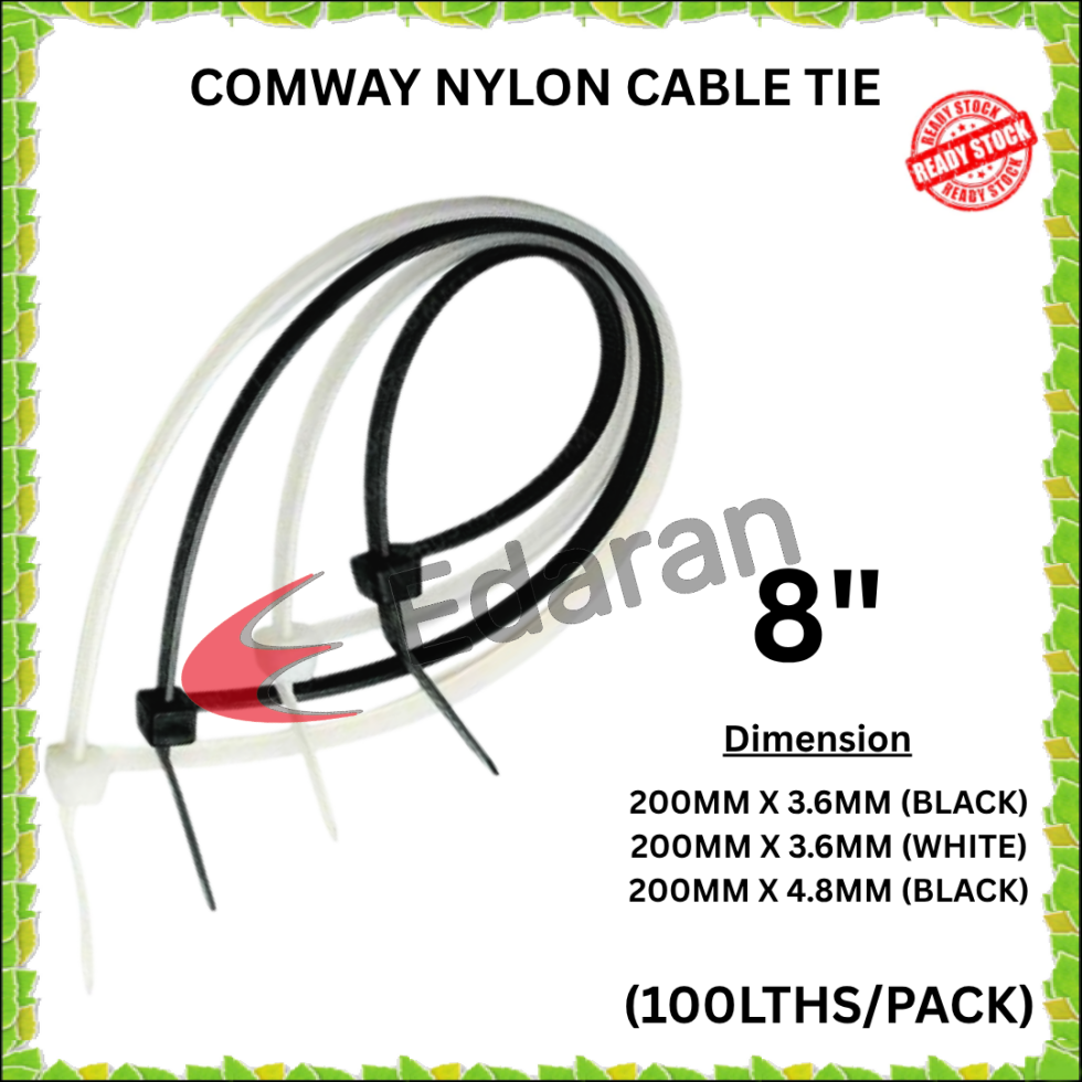 COMWAY 8" NYLON CABLE TIE (100LTHS/PACK) (BLACK/WHITE)