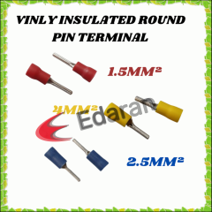 (x100pc) KF BRAND VINYL INSULATED ROUND PIN TERMINAL -1.5MM²(RED) , 2.5MM²(BLUE) AND 4MM²(YELLOW)
